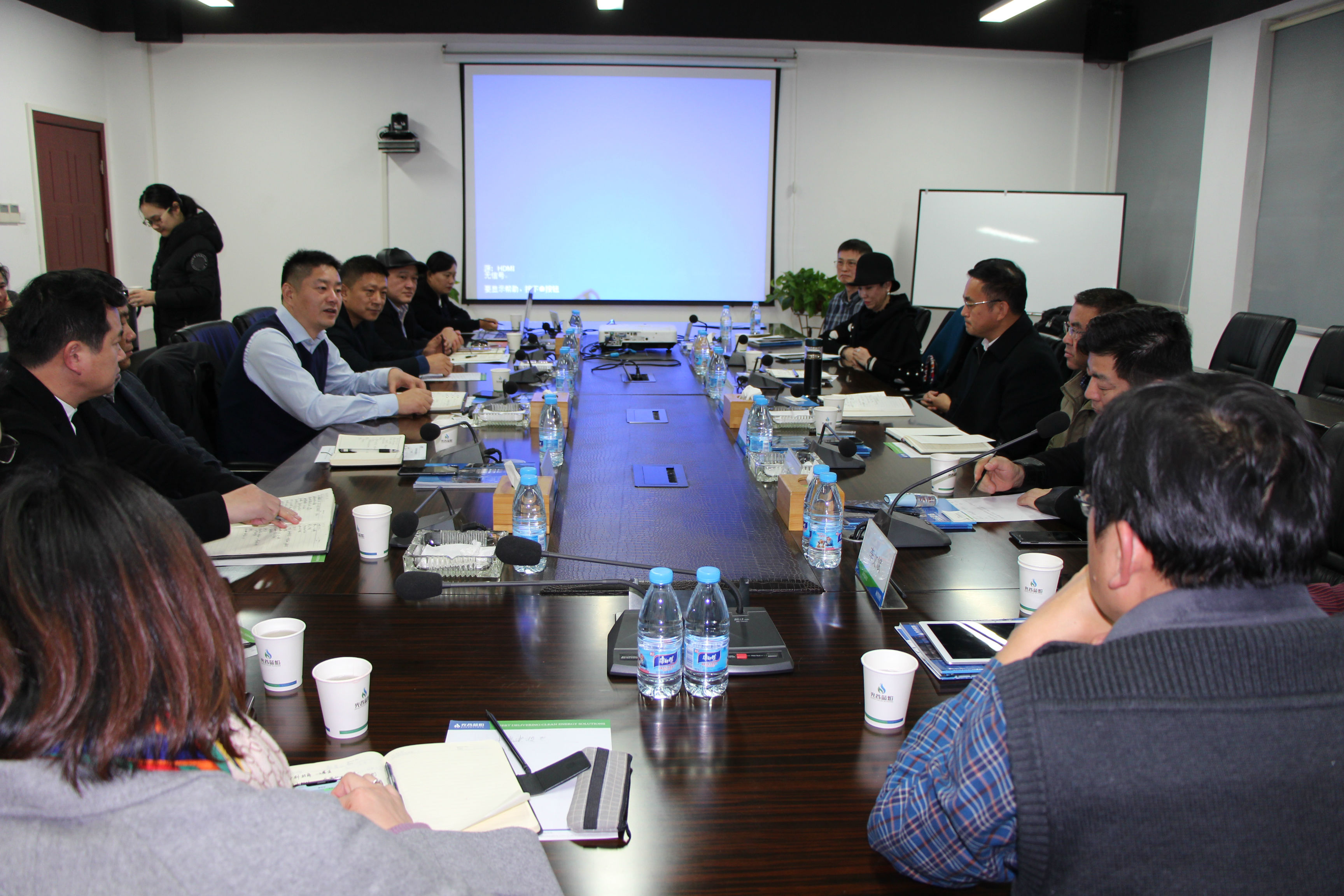 當(dāng)天上午,黃岡市副市長余文斌率市政府相關(guān)部門領(lǐng)導(dǎo),及中誠碳基集團(tuán)、中科招商集團(tuán)、中信投資負(fù)責(zé)人參觀了光谷藍(lán)焰展廳,觀看了公司宣傳片。座談會(huì)聽取了光谷藍(lán)焰的情況介紹,就黃岡發(fā)展碳基產(chǎn)業(yè)項(xiàng)目進(jìn)行了洽談。