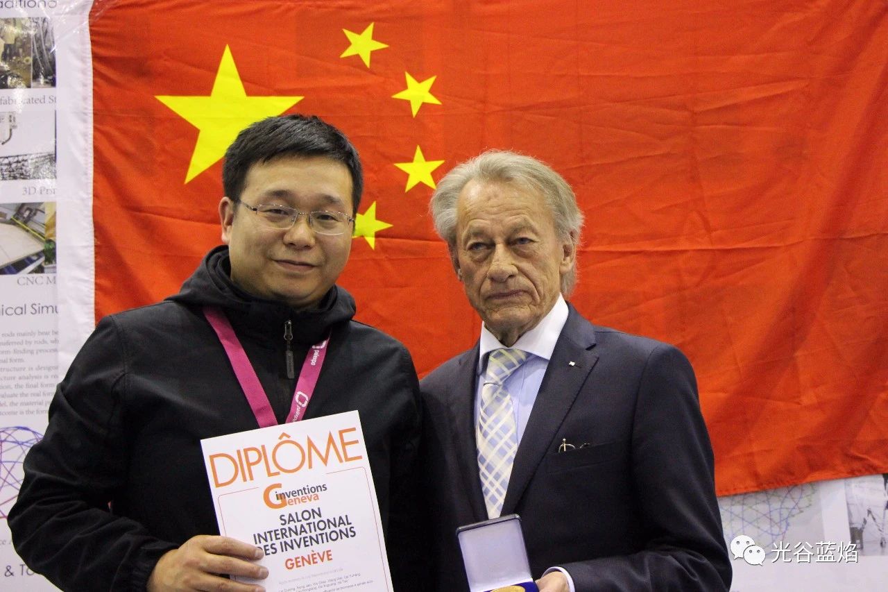 日內(nèi)瓦發(fā)明展主席Jean-luc對光谷藍(lán)焰生物質(zhì)熱解技術(shù)給出了高度評價,稱贊該技術(shù)全球領(lǐng)先,在生物質(zhì)循環(huán)利用領(lǐng)域具有重要推廣價值。圖為Jean-luc在日內(nèi)瓦為藍(lán)焰代表頒獎。